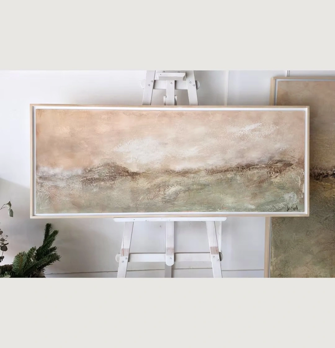 Obra abstracta con técnica mixta, acrílico sobre tabla.